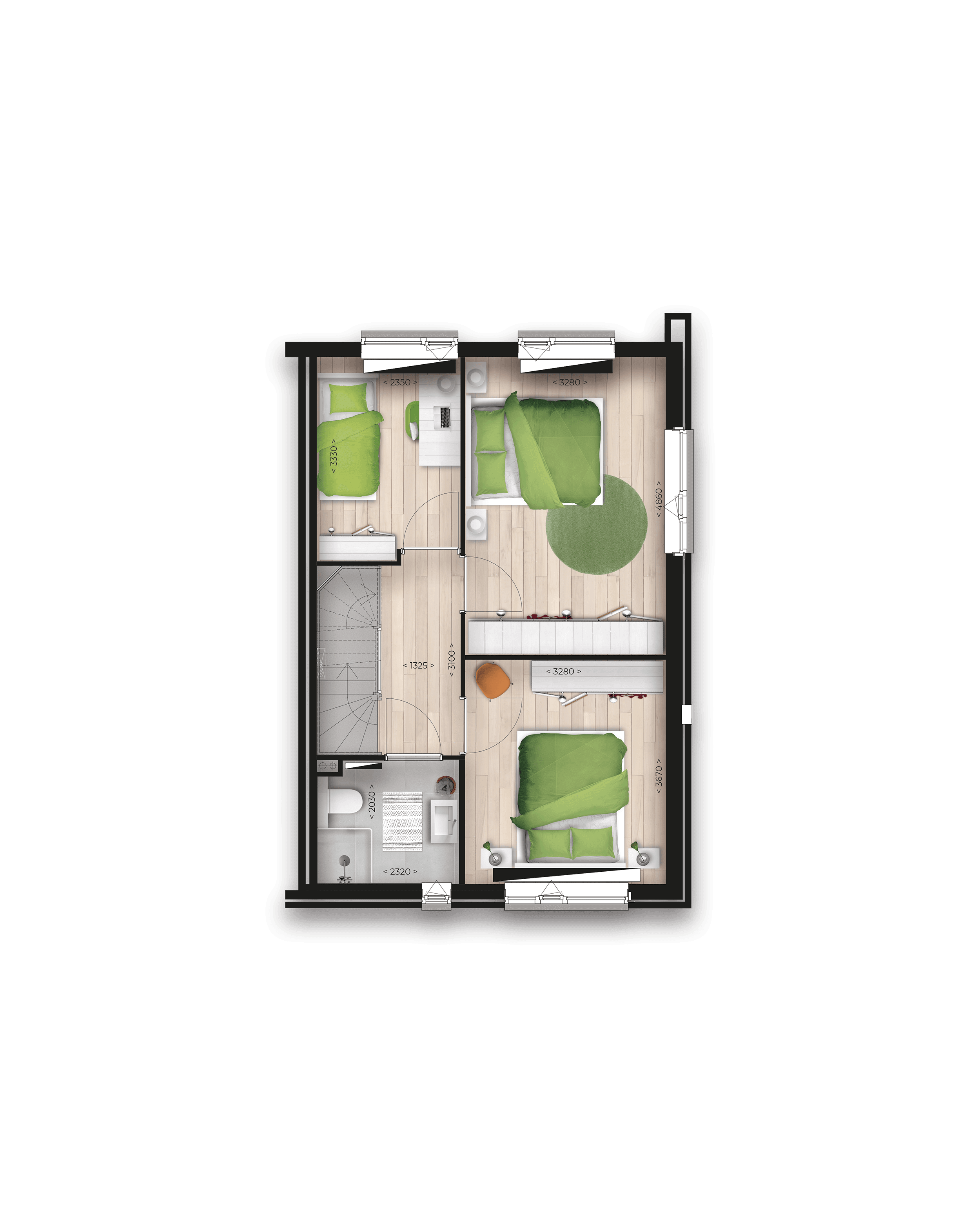 Ben jij op zoek naar de perfecte mix van comfort, functionaliteit en unieke architectuur? Dan kom jij thuis in één van de acht ruime en stijlvolle herenhuizen, ontworpen met oog voor detail en hoogwaardige afwerking. Met maar liefst vijf slaapkamers is dit herenhuis ideaal wanneer je als gezin op zoek bent naar extra woonruimte. Bovendien geniet je van alle gewenste luxe, zoals een tweede badkamer op de bovenste verdieping en de optie voor een royale inloopkast in de master bedroom. Dankzij de grote raampartijen profiteer je overal in huis van een prachtige lichtinval.