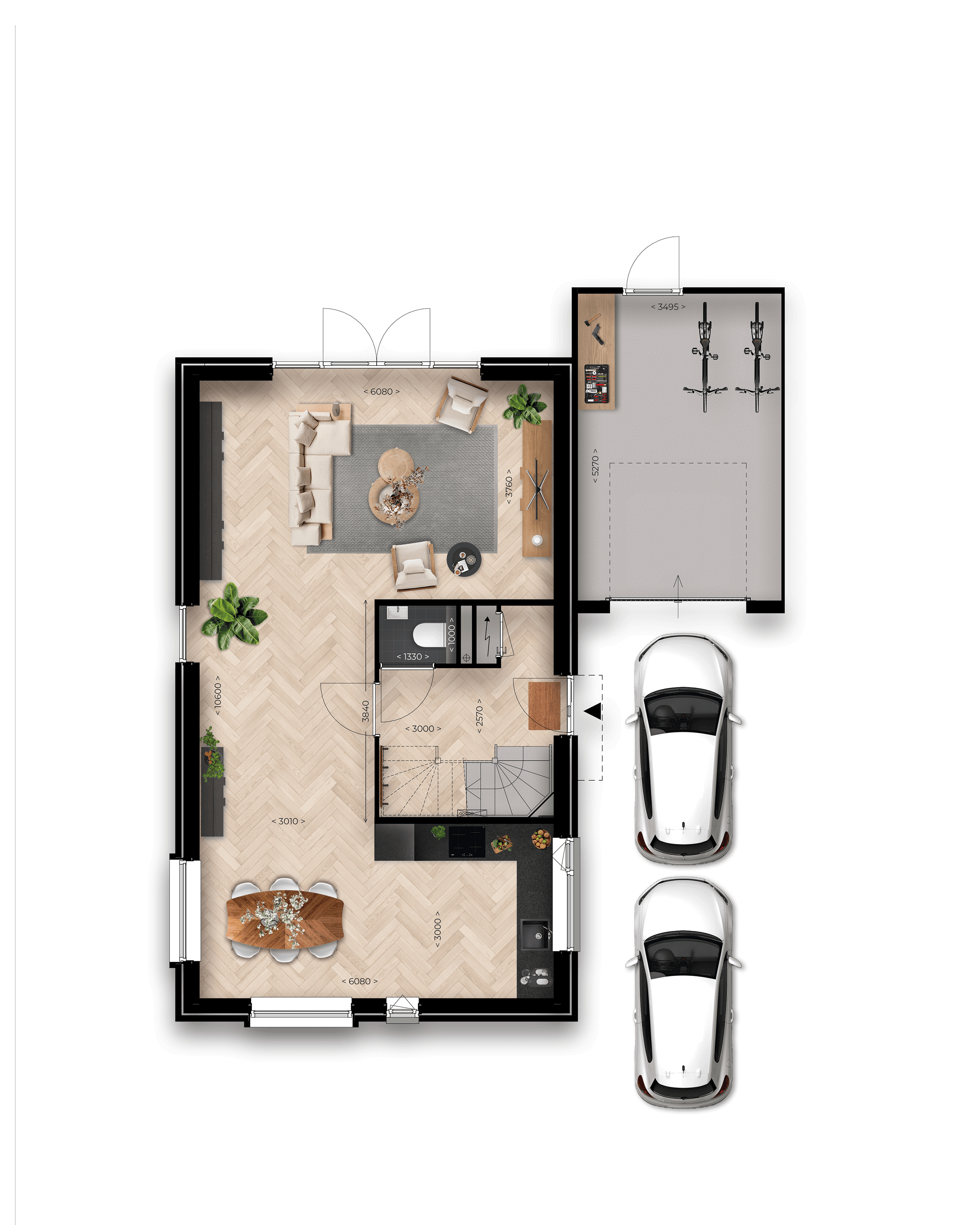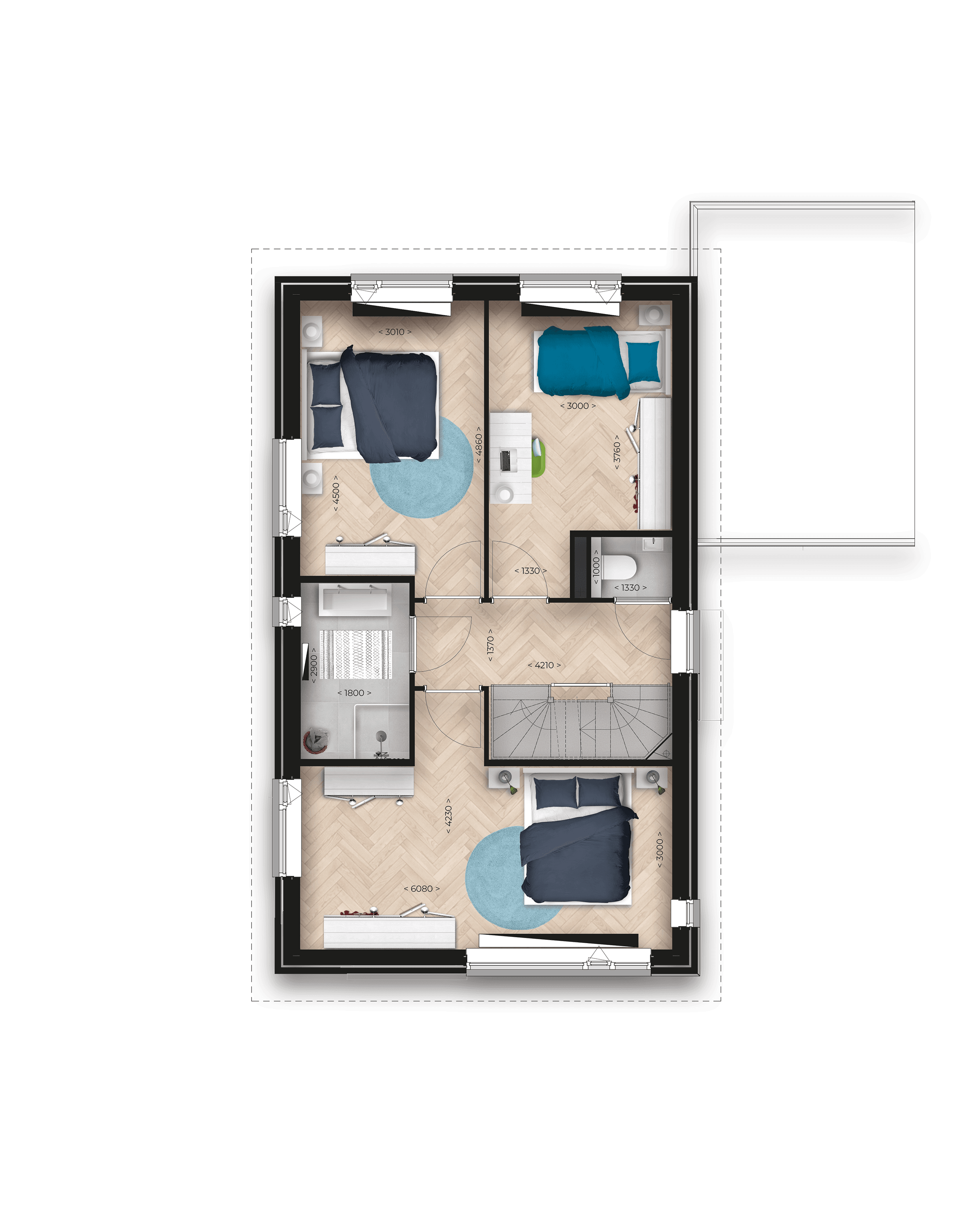 Dwarskap met ruime, vrij indeelbare zolderverdieping